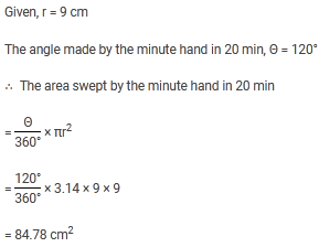 The length of a minute hand of a wall clock is 9 cm. What is the area swept (in cm2) by the minute hand in 20 min ? (take π = 3.14)