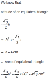 What is the area of an equilateral triangle having altitude equal to 2√3 cm?