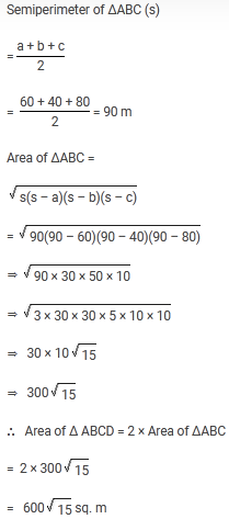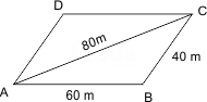 A parallelogram has sides 60 m and 40 m and one of its diagonals is 80 m long. Its area is