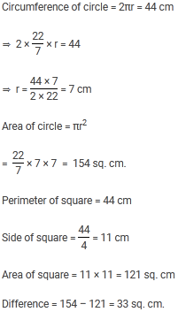 A wire of length 44 cm is first bent to form a circle and then rebent to from a square. The difference of the two enclosed areas is