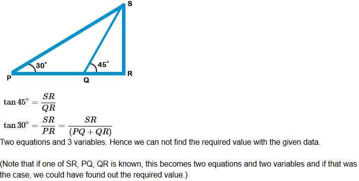 A man standing at a point P is watching the top of a tower, which makes an angle of elevation of 30º with the man's eye. The man walks some distance towards the tower to watch its top and the angle of the elevation becomes 45º. What is the distance between the base of the tower and the point P?