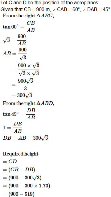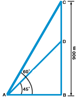 An aeroplane when 900 m high passes vertically above another aeroplane at an instant when their angles of elevation at same observing point are 60° and 45° respectively. Approximately, how many meters higher is the one than the other?