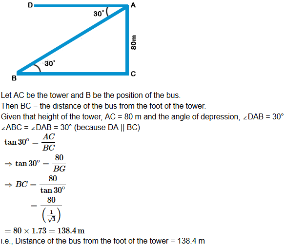 From a tower of 80 m high, the angle of depression of a bus is 30°. How far is the bus from the tower?
