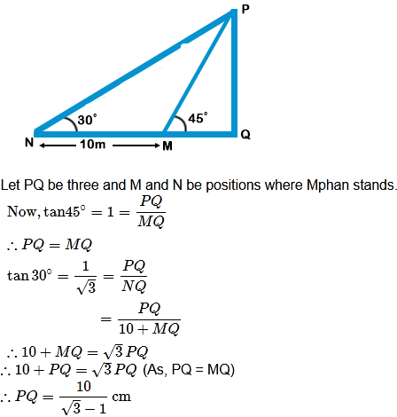 Mohan looks at a tree top and the angle made is 45 deg He moves 10 cm back and again looks at the tr...........