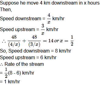 Ramesh rows to a place 48 km distant and back in 14 hours. He finds that he can row 4 km with the stream in the same time as 3 km against stream. Find the rate of the stream?