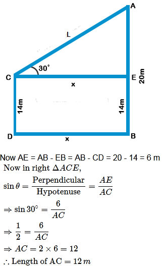 Multiple Choice Questions on The tops of two poles of height 20 m and 14 m are connected by a wire If the wire makes an angle of ........... for Mathematics - All Exams Preparation