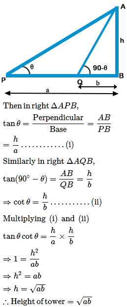 Multiple Choice Questions on If the angle of elevation of the top of a tower from two points distant a and b from the base and in........... for Mathematics - All Exams Preparation