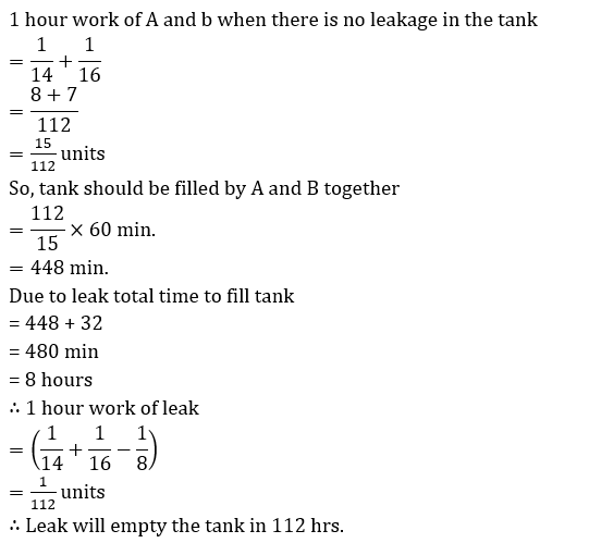 Question 1.Two pipes can fill a cistern in 14 and 16 hours respectively. The pipes are opened simultaneously and it is found that due to leakage in the bottom of the cistern, it takes 32 minutes extra for the cistern to be filled up. When the cistern is full, in what time will the leak empty it ?