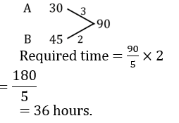Question 3. Pipe A can fill an empty tank in 30 hours while B can fill it in 45 hours. Pipe A and B are opened and closed alternatively i.e., first pipe A is opened, then B, again A and then B and so on for 1 hour each time without any time lapse. In how many hours the tank will be filled when it was empty, initially ?