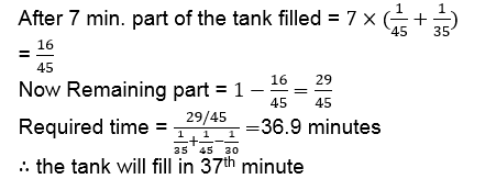 Question 6. A cistern can be filled separately by two pipes P and Q in 45 minutes and 35 minutes respectively. A tap R at the bottom can empty the full cistern in 30 minutes. If the tap R is opened 7 minutes after the two pipes P and Q are opened then after what time from the opening of tap R the cistern becomes full?