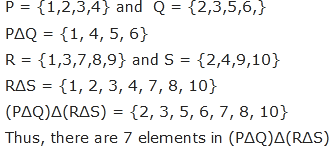 For two sets A and B, let AΔB denote the set of elements which belong to A or B but not both. If P = {1,2,3,4}, Q = {2,3,5,6,}, R = {1,3,7,8,9}, S = {2,4,9,10}, then the number of elements in (PΔQ)Δ(RΔS) is