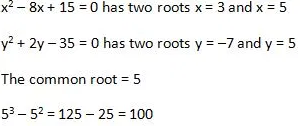 What is the difference of the cube and square of the common root of (x2 - 8x + 12) = 0 and (y2 - 2y - 35) = 0?