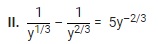 ⇒ y2/3 – y1/3 = 5 × y–2/3 × y1/3 × y2/3 ⇒ y1/3 × (y1/3 – 1) = 5y1/3 ⇒ 5y1/3 – y1/3 × (y1/3 – 1) = 0 ⇒ y1/3 × (5 – y1/3 + 1) = 0 ⇒ y1/3 = 0 and y1/3 = 6 But y can't be 0 because if we put 0 in the equation the value becomes undefined. So the possible value of y is 216. So the root of y is greater than x.