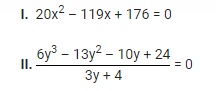 Directions: In each question two equations numbered I and II are given. You have to solve both the equations and mark the answer