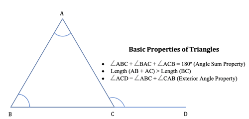 Thus, we can say that a triangle is a polygon, which has three sides, three angles, three vertices and the sum of all three angles of any triangle equals 1800.