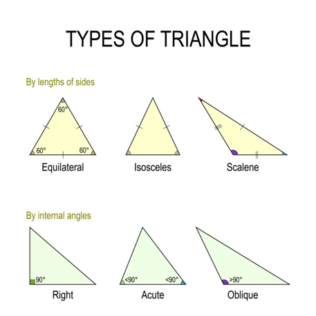 According to the lengths of their sides, triangles can be classified into three types which are: