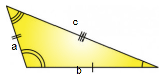 A scalene triangle has all side lengths of different measures. No side will be equal in length to any of the other sides in such a triangle. In a scalene triangle, all the interior angles are also different. The figure given below illustrates a scalene triangle. You can see how none of the sides is equal in length.