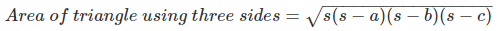 where, s is semi-perimeter of the triangle = s = (a+b+c) / 2
