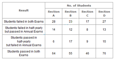 Drection(1-5)A school has four sections A, B, C, D of Class IX students.The result of half yearly and annual examination are shown in the table belowbelow