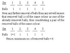 Three ducks can A box contains five sets of balls while there are 3 balls in each set. Each set of balls has one color which is different from every other set, what is the least number of balls that must be removed from the box in order to claim with certainty that a pair of balls of the same colour has been removed?