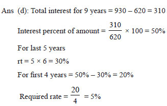 An amount of 620 becomes 930 after 9 years at simple interest. If interest rate of last 5 years is 6% than find the interest rate for first 4 years.