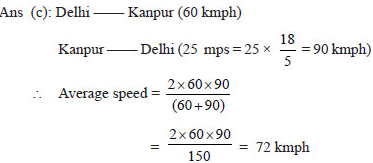 A man travels at 60 kmph on the journey from Delhi to Kanpur and returns at 25 mps. Find his average speed for the journey.