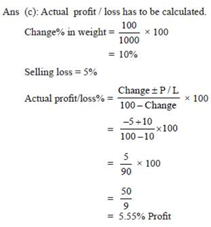 Multiple Choice Questions on A dishonest dealer professes to sell at a loss of 5 but uses a 900 gm weight instead of a 1 kg weigh........... for Mathematics - All Exams Preparation