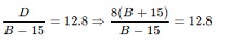 Time taken to cover D km upstream = D/ (B- 15) = 12.8 -----------------(1)