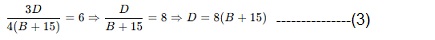 Time taken to cover (3/4)D downstream = 3D / 4x(B+15) = 6 -----------(2)
