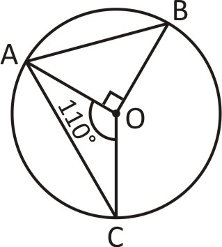 A, B and C are the three points on a circle such that the angles subtended by the chords AB and AC at the centre O are 90° and 110° respectively. ∠BAC is equal to