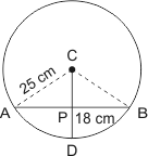 In ΔACP CP = CD – PD = 25 – 18 = 7 Now, AC2 = CD2 + AP2 ∴ AP = √(AC2 – CD2) = √((25)2 – (7)2) = √(625 – 49) = √576 = 24 cm Similarly, PB = 24 cm ∴ AB = AP + PB = 24 + 24 = 48 cm.