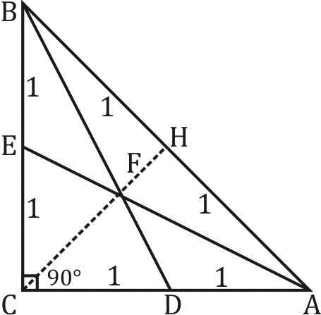 In a right angle , ∠C = 90° AE and BD are two median of a ABC meeting at F. The ratio of the area of ABF and FDC.