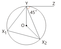 YZ is the tangent of a circle drawn at point Y. ∠ZYX2 = 45° ∴ ∠YX1X2 = 45° (Property of a circle) ∠YOX2 = 2∠YX1X2 = 2 × 45 = 90° Length of arc YX2 =90× 2πr/360 (where r is the radius of circle) =1/4×2× 22/7 × 3.5 = 5.5 cm