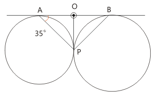 Two circles touch each other externally at P. AB is a direct common tangent to the two circles, A and B are points of contact and ∠PAB = 35° . Then ∠ABP is is