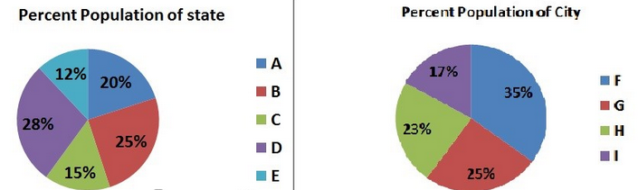A country X has five states A, B, C, D and E. The population distribution of these states is given in the graph below. The population distribution of cities F, G, H and I that are located in state A and cities J, K and L that are located in state B is also given. Using the given data answer the questions that follow.