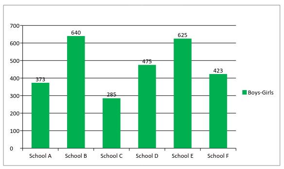 School A: B+G = 10035 B-G = 373 Girls = 4831 In School B: B+G = 10098 B-G = 640 G = 4729 Difference = 102