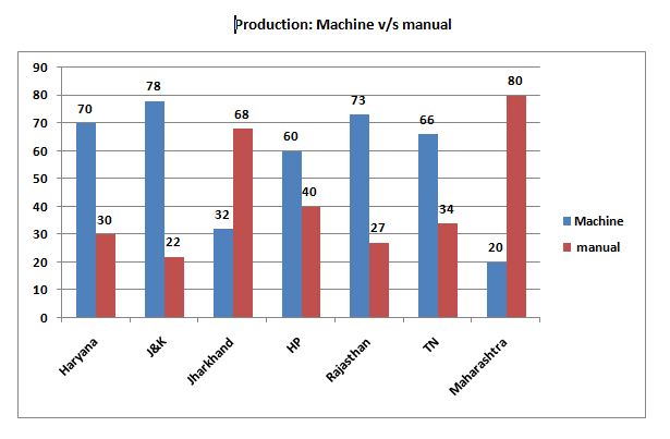 Multiple Choice Questions on The production by machine method in Haryana is approximately what percent greater than the productio........... for Mathematics - All Exams Preparation