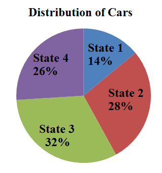 Pie-Chart showing percentage distribution-wise of cars in four different states