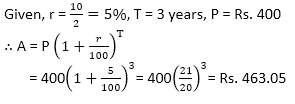 If the rate of interest is 10% per annum and is compounded half yearly, the principal of Rs. 400 in 3/2 year will amount to ?