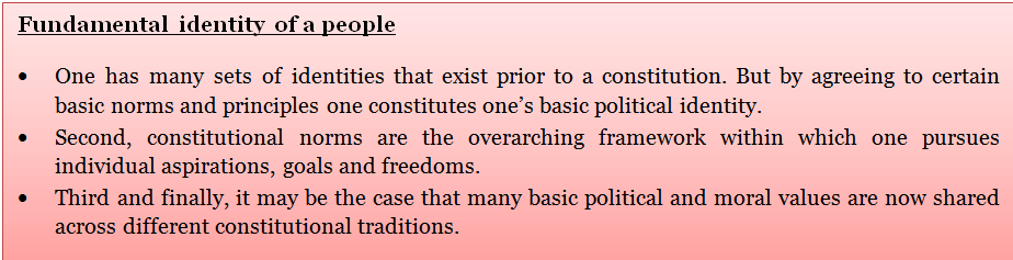 Achievements of our Constitution- First, our Constitution reinforces and reinvents forms of liberal individualism. This is an important achievement because this is done in the backdrop of a society where community values are often indifferent or hostile to individual autonomy. Second, our Constitution upholds the principle of social justice without compromising on individual liberties. The constitutional commitment to caste-based affirmative action programme shows how much ahead India was compared to other nations. Third, against the background of inter-communal strife, the Constitution upholds its commitment to group rights (the right to the expression of cultural particularity). This indicates that the framers of the Constitution were more than willing to face the challenges of what more than four decades later has come to be known as multiculturalism.