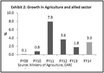 Agriculture plays a significant role in the economy of India. It provides employment to a large number of population in agro based industries. Agriculture and allied sectors contributes nearly 15 per cent of Gross Domestic Product (GDP), while about 49per cent of the population is dependent on agriculture for their livelihood. The agricultural output, depends on monsoon as nearly 55 per cent of area sown is dépendent on rainfall.