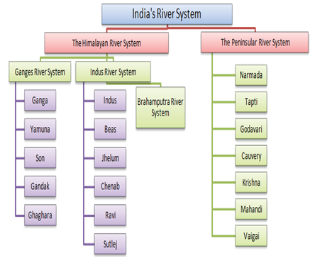 On the basis of Origin, two broad drainage systems of India are : (I) The Himalayan Rivers (II) The Peninsular Rivers. These rivers show different drainage patterns in different regions