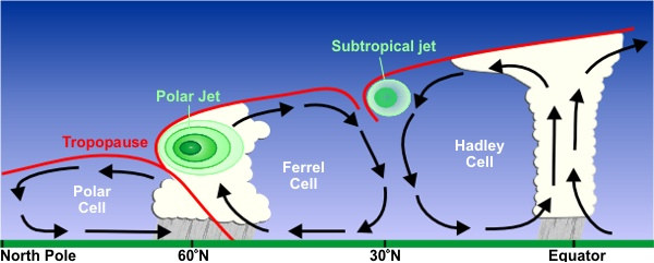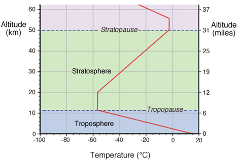 Stratosphere is free from the violent weather changes which occur below in the Troposphere. So, it is preferred by commercial airliners. The commercial airliners typically cruise at altitudes of 9–12 km in the lower reaches of the stratosphere. They do this to optimize fuel burn. Jet liners, however, face another menace in stratosphere, namely jet streams. Jet streams are high velocity horizontal air currents. The main jet streams are located near the tropopause, the transition between the troposphere (where temperature decreases with altitude) and the stratosphere (where temperature increases with altitude). The location of the jet stream is extremely important for aviation. Jet