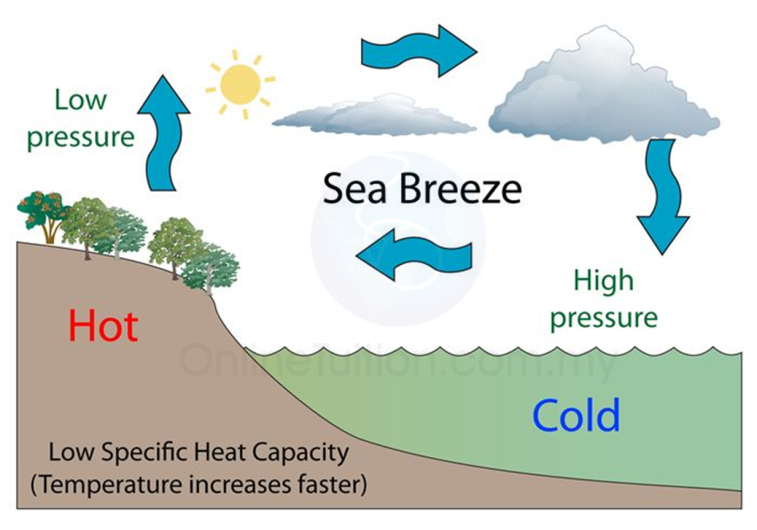 the Gulf Stream, increases the moisture content of easterly winds from the open Atlantic