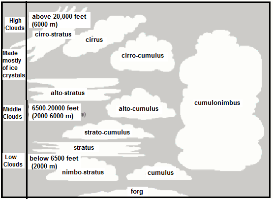 The atmosphere is commonly described in terms of distinct layers, or regions. Most of the atmosphere is concentrated in the TROPOSPHERE, which extends from the surface to an altitude of about 15 kilometres. The behaviour of the gases in this layer is controlled by convection. This process involves the turbulent, overturning motions resulting from buoyancy of near-surface air that is warmed by the Sun. Convection maintains a vertical temperature gradient (i.e., temperatures decline with altitude) of roughly 6º C per kilometre (1o C per 165m) through-out the troposphere. At the top of the troposphere, which is called the tropopause (zone of transition between troposphere and stratosphere), temperatures fall to about -60º C (-76º F). The troposphere is the region where virtually all water vapour exists and where all weather occurs.