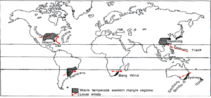 Heavy rainfall is recorded in areas where cyclones are frequent