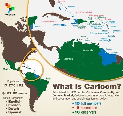 CARICOM has 15 members including Antigua and Barbuda, Bahamas, Barbados, Belize, Dominica, Grenada, Guyana, Haiti, Jamaica, Montserrat, St. Kitts and Nevis, St Lucia, St. Vincent and the Grenadines, Suriname, and Trinidad & Tobago.