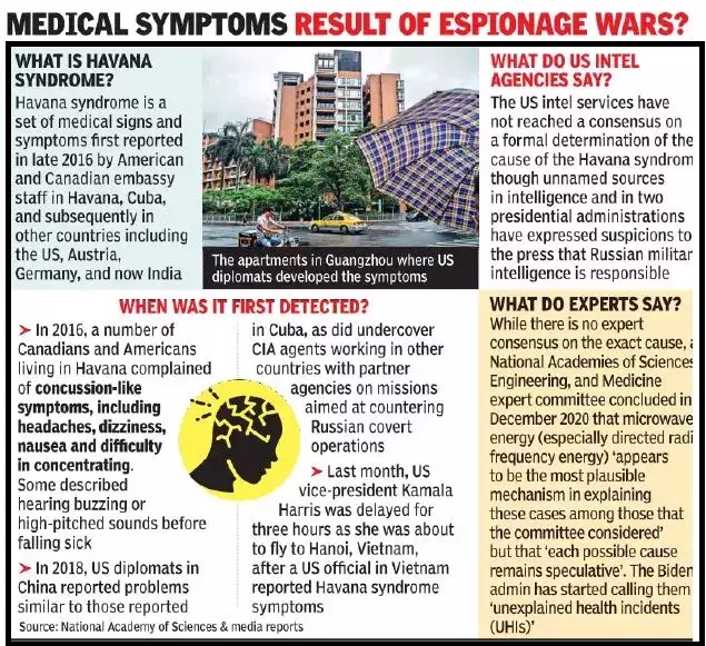 • The term "Havana Syndrome" originates from incidents in Cuba in 2016, where some of the US embassy staff experienced brain pressure, headaches, disorientation, and insomnia.