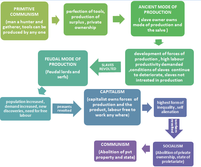 The theory is known as historical because Marx has traced the evolution of human societies from one stage to another. It is called materialistic because Marx has interpreted the evolution of societies in terms of their material or economic bases. Materialism simply means that it is matter or material reality, which is the basis for any change. The earlier view, which of Hegel, was that ideas were the cause of change. Marx opposed this view and instead argued that ideas were a result of objective reality, i.e., matter and not vice versa..