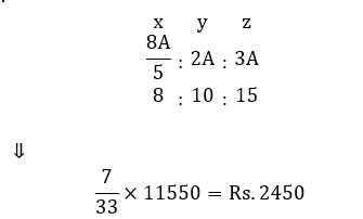 Rs 11,550 has to be divided between X, Y & Z such that X gets 4/5 of what Y gets and Y gets 2/3 of what Z gets. How much more does Z get over X (in Rs)?